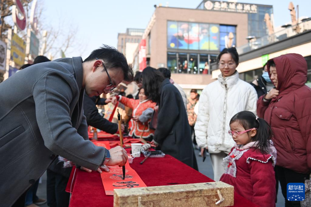 当日,浙江省湖州市新春文艺市集在吴兴区爱山街道爱山广场举行。文艺志愿者在广场上为市民表演文艺节目,写春联,免费拍摄全家福,并通过特色摊位展示非遗作品。