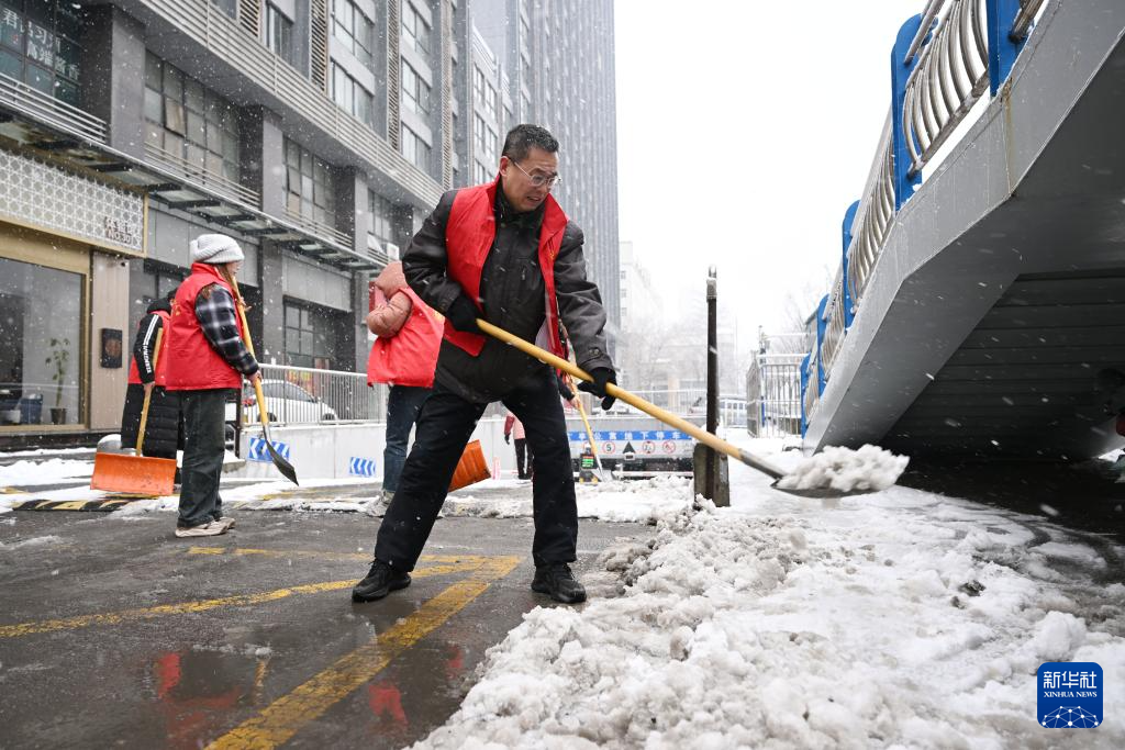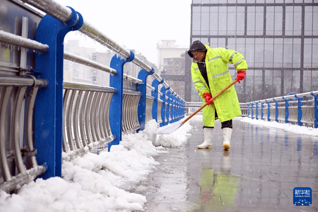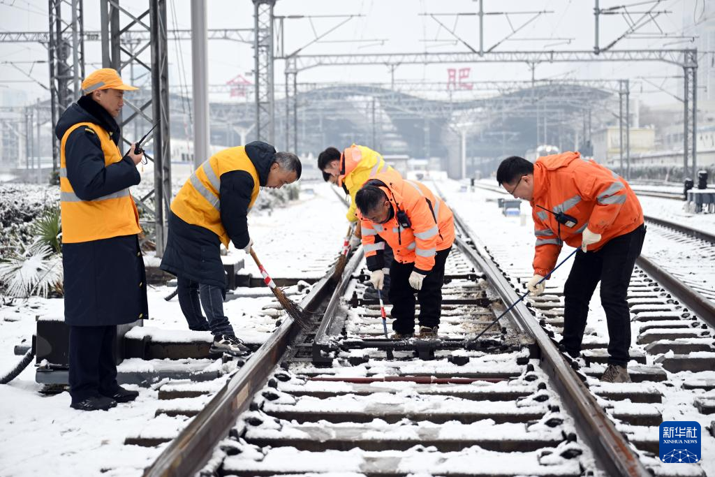 近日,安徽省合肥市迎来低温雨雪天气,铁路、轨道交通、交警、供电、供水、市政、环卫、社区等各部门工作人员冒着风雪坚守岗位,保障交通运输及市民出行安全。