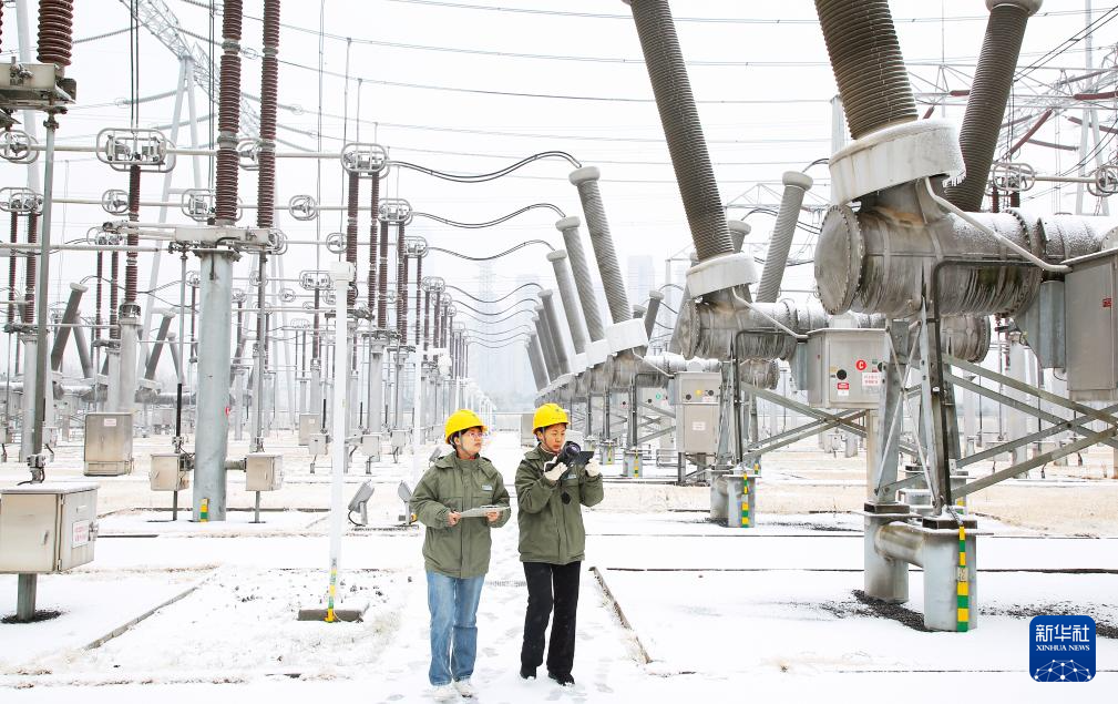 2月4日,在位于合肥市肥西县的500千伏肥西变电站,国网合肥供电公司变电运维值班员使用红外测温仪开展低温设备特巡。