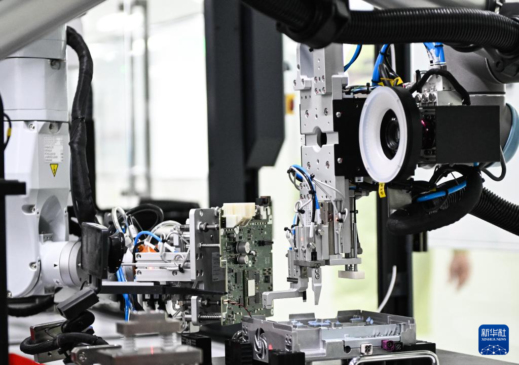 在无锡车联天下信息技术有限公司自动化生产线,机器人生产智能网联汽车座舱域控制器(2月27日摄)。