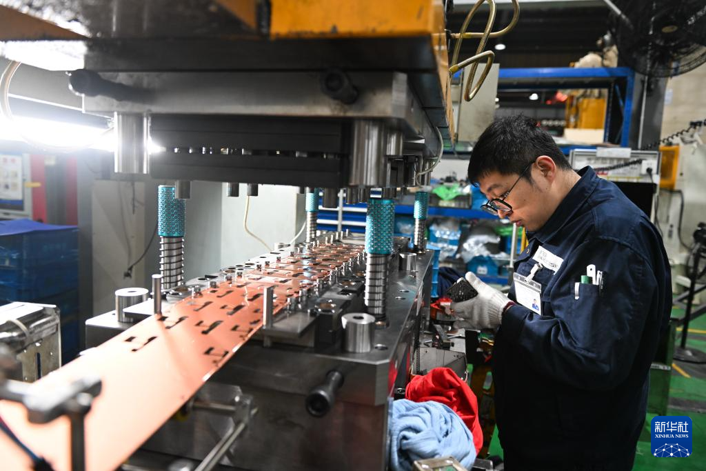 在“江苏省专精特新中小企业”无锡微研精工科技有限公司智能生产车间,技术人员在调试模具(2月28日摄)。