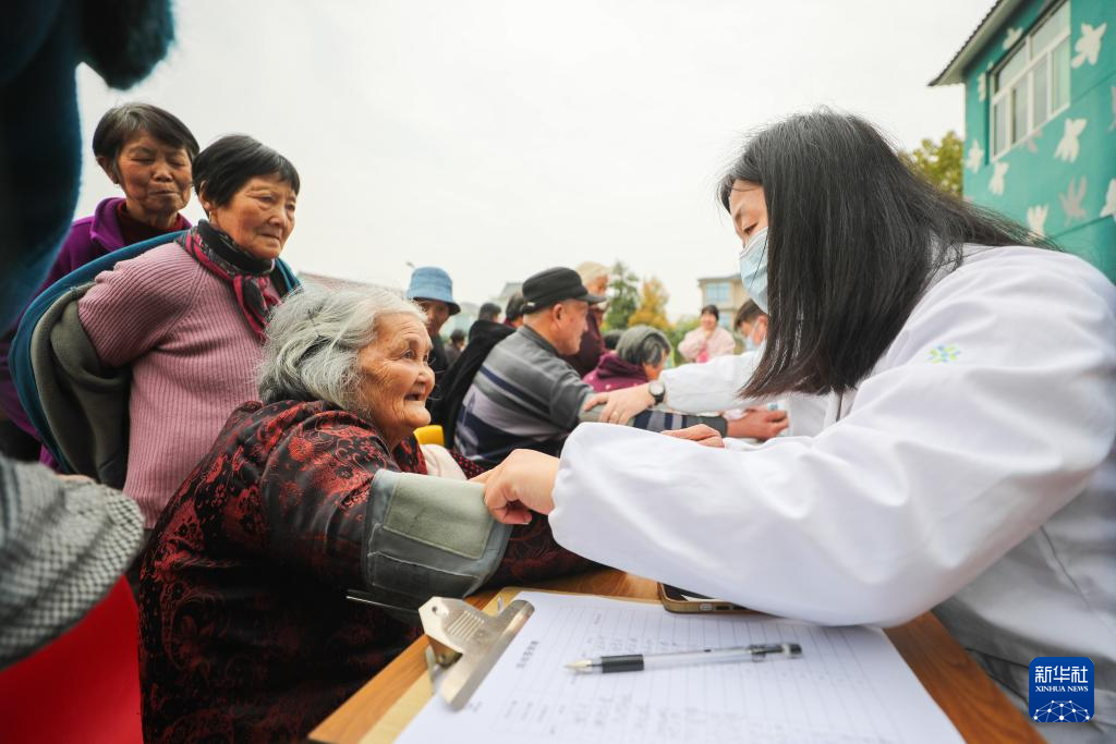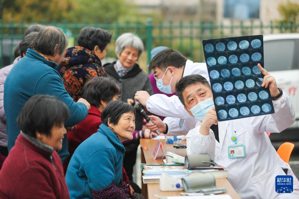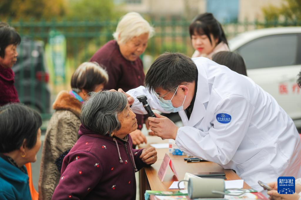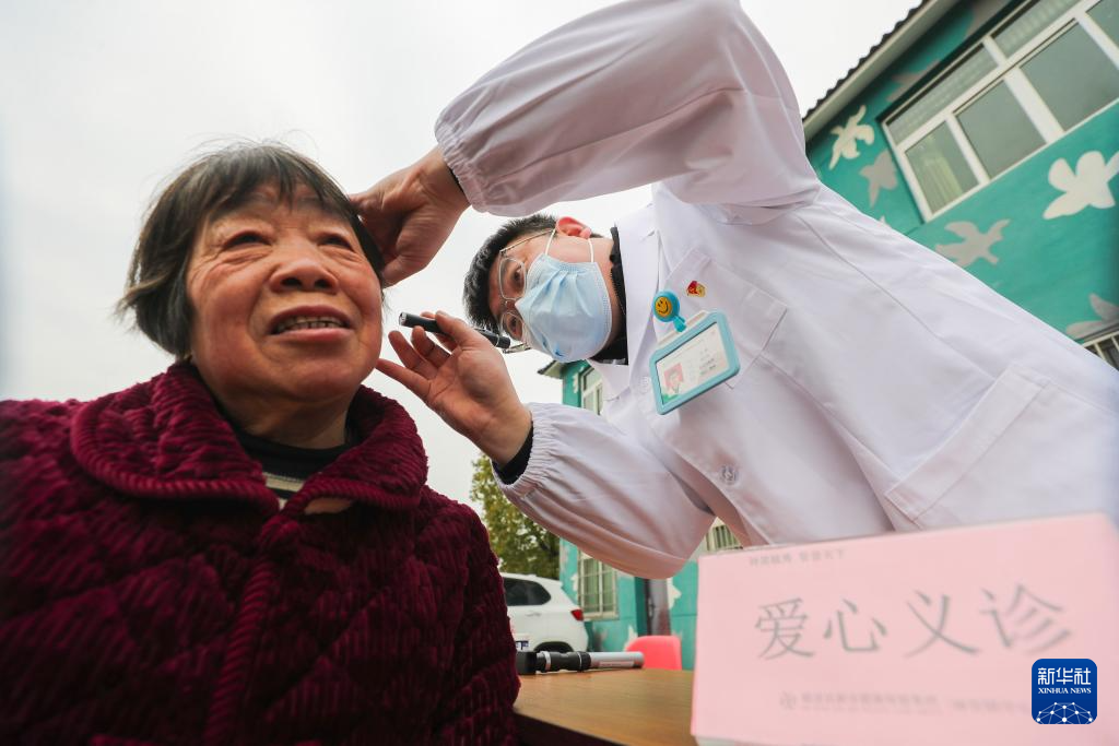 ↑2024年3月14日,浙江省湖州市德清县钟管镇曲溪村,医护人员为村民义诊。CICPHOTO/王正 摄