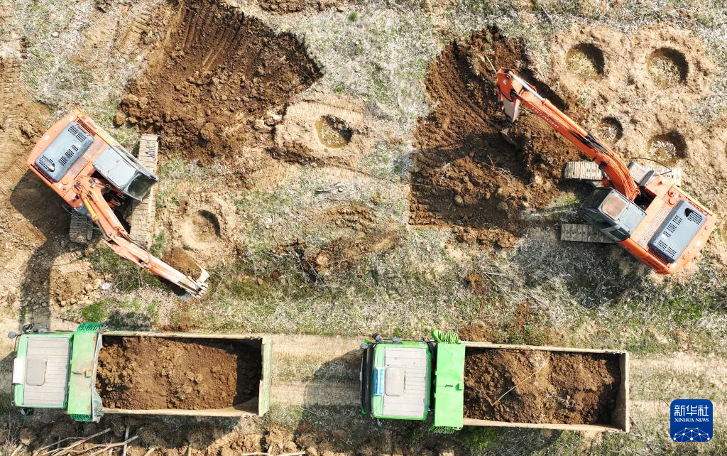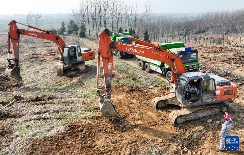 3月15日拍摄的陕北—安徽±800千伏特高压直流输电工程、岳西抽水蓄能电站开工现场。