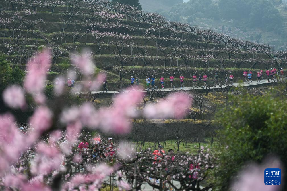 3月24日,参赛选手经过奉化区萧王庙街道林家村的桃园。