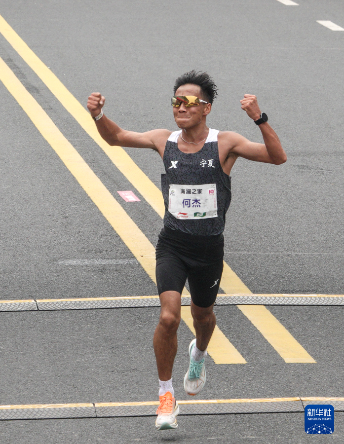 3月24日,何杰在比赛中冲线。最终,他以2小时06分57秒的成绩获得全国马拉松锦标赛(第一站)男子组冠军并创造了新的全国纪录。