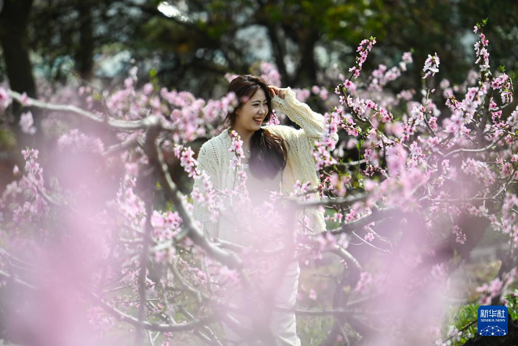 春日,江苏镇江高新区蒋乔街道嶂山村数百亩桃花竞相绽放,灿若云霞,引来游客赏花游玩。