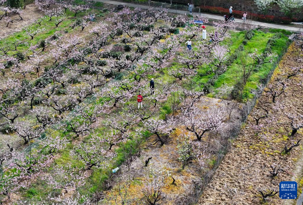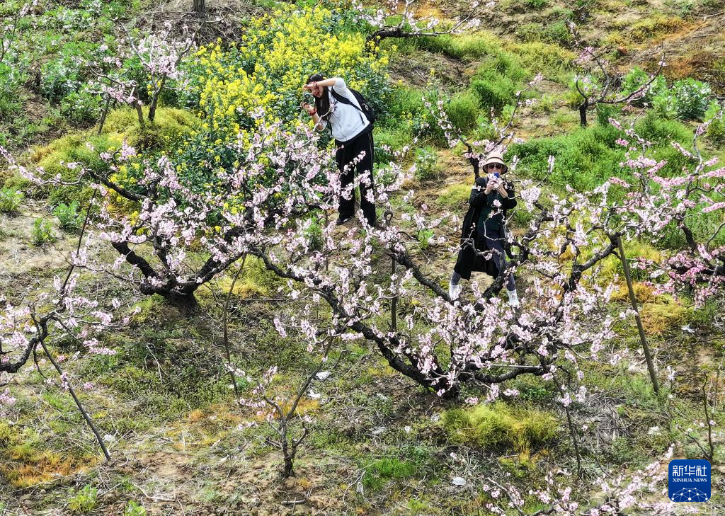 3月30日,游客在嶂山村赏花(无人机照片)。