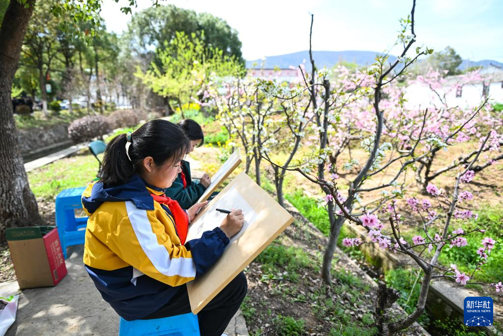 3月30日拍摄的嶂山村桃花(无人机照片)。