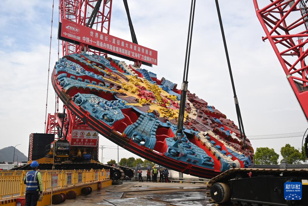 当日,由中铁十一局集团承建的甬舟铁路金塘海底隧道舟山侧“定海号”盾构机核心部件组装完成,为甬舟铁路金塘海底隧道盾构机始发穿海奠定基础。
