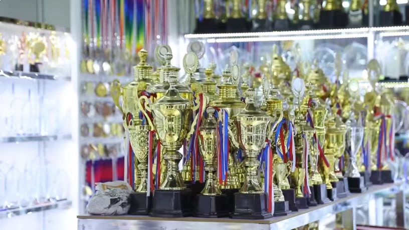 义乌国际商贸城三区经营户叶德模的店铺里,摆满了金灿灿的奖杯和奖牌。有着多年外贸出口经验的他,对不同国家和地区的客户偏好可谓如数家珍。比如,给亚洲、美洲客户做的奖杯、奖牌要是“土豪金”的,越亮越受欢迎,而欧洲客户就更喜欢淡淡的金色,低调里藏着点奢华感。
