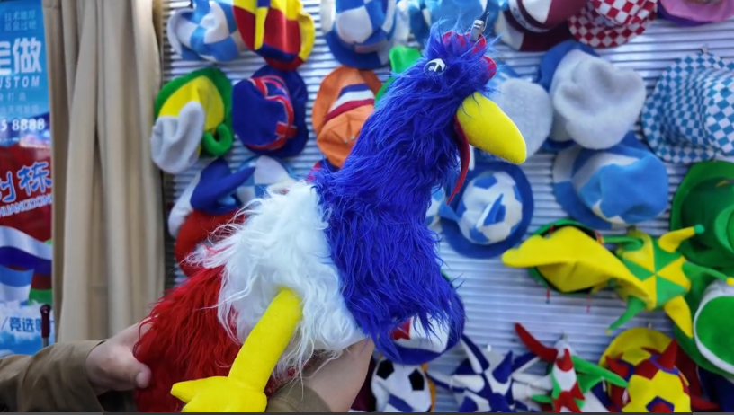 “我们设计的这顶帽子,就是以一只高卢雄鸡为造型,搭配传统的法国国旗配色,还有国旗围巾、球衣、假发等赛事周边产品。”义乌国际商贸城经营户周婷婷说,相关产品供不应求,暂时只能满足提前预定客户的需求,“因为现在太忙了,根本没有办法做急单。”