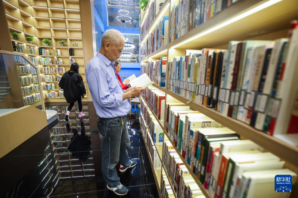4月16日,居民在嘉兴市南湖区东栅街道南江社区智慧书房借阅图书。
