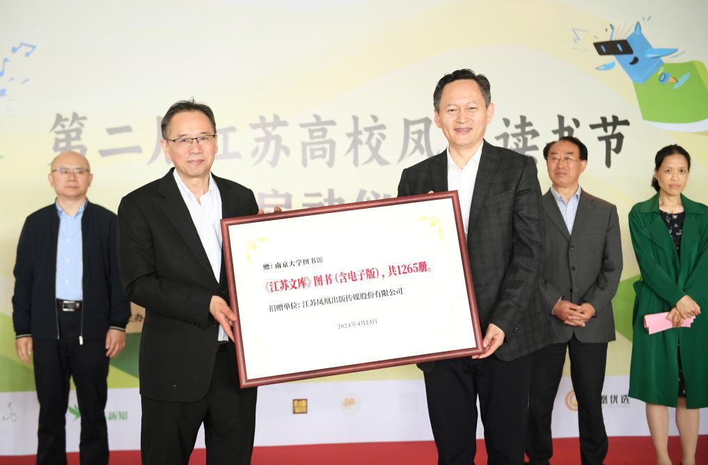 第二届江苏高校凤凰读书节“红楼会客厅”授牌、南京大学图书馆受赠入藏《江苏文库》等仪式同步举行。作为江苏省委省政府、省委宣传部组织实施的全省性文化发展战略工程——“江苏文脉整理研究与传播工程”的出版成果,《江苏文库》涵盖书目、文献、精华、史料、方志、研究六编,由凤凰传媒旗下凤凰出版社、江苏人民出版社承担具体出版任务,目前已出版1265册。这套文库收录了大量展示江苏各地风景名胜、风土人情和生活图景的图书文献以及最新研究成果,以厚重而深刻的方式,全面呈现着“最江苏”的文化记忆。据介绍,除南京大学图书馆外,江苏各重点高校的图书馆也有机会获赠并入藏这套文库,以便高校学者教师及青年学子深入了解源远流长的江苏文脉。