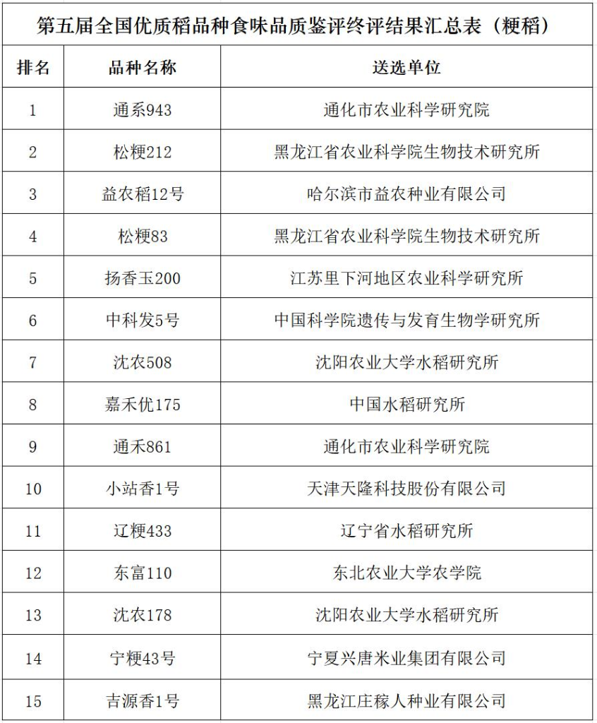 为展示我国优质水稻育种最新成果,共同推进水稻创新攻关和产业发展,4月28日至29日,第五届全国优质稻品种食味品质鉴评暨国家水稻育种联合攻关推进会在浙江省杭州市举办。经过专家组严格评选和专业品鉴,15个粳稻品种和15个籼稻品种获评本届金奖。