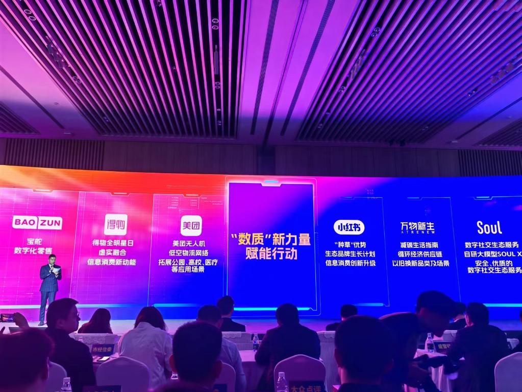 开幕式上,“数质”新力量赋能行动发布,美团、小红书、得物等六家沪上数字平台企业分别发表此次信息消费节期间的活动方案,以及针对商家、消费者的赋能计划,共同推动数字经济的高质量发展,创造更美好的生活体验。