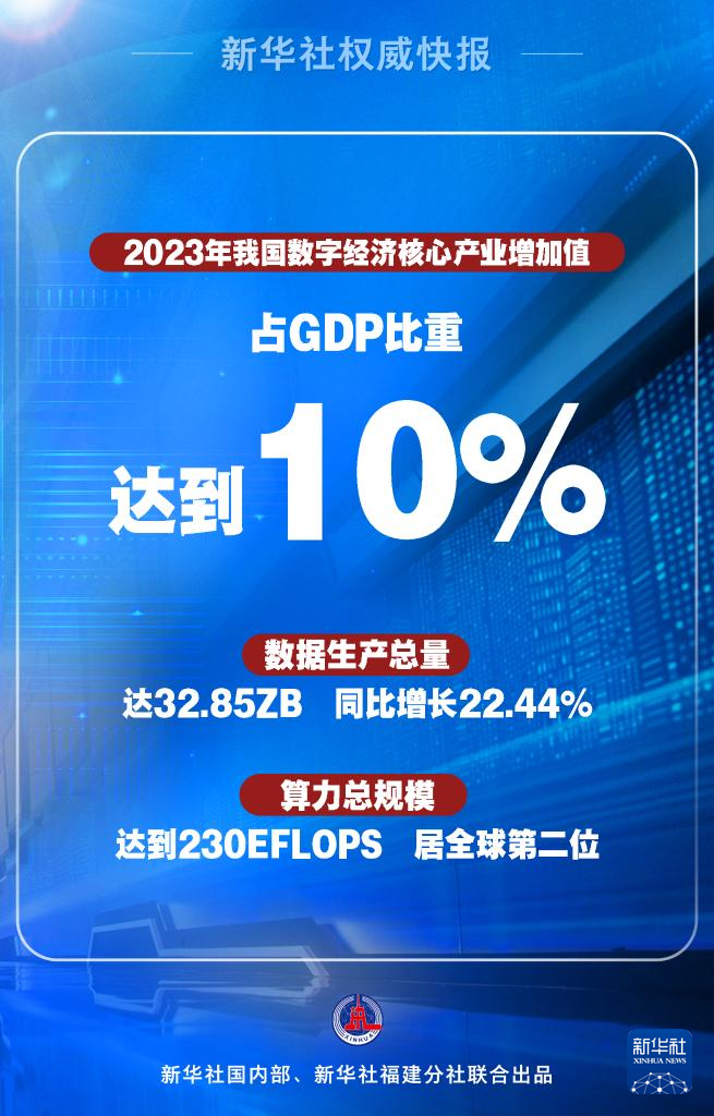 24日开幕的第七届数字中国建设峰会上传来好消息:2023年,我国数字经济核心产业增加值占国内生产总值(GDP)比重达到10%。亿万民众畅享“数智红利”。