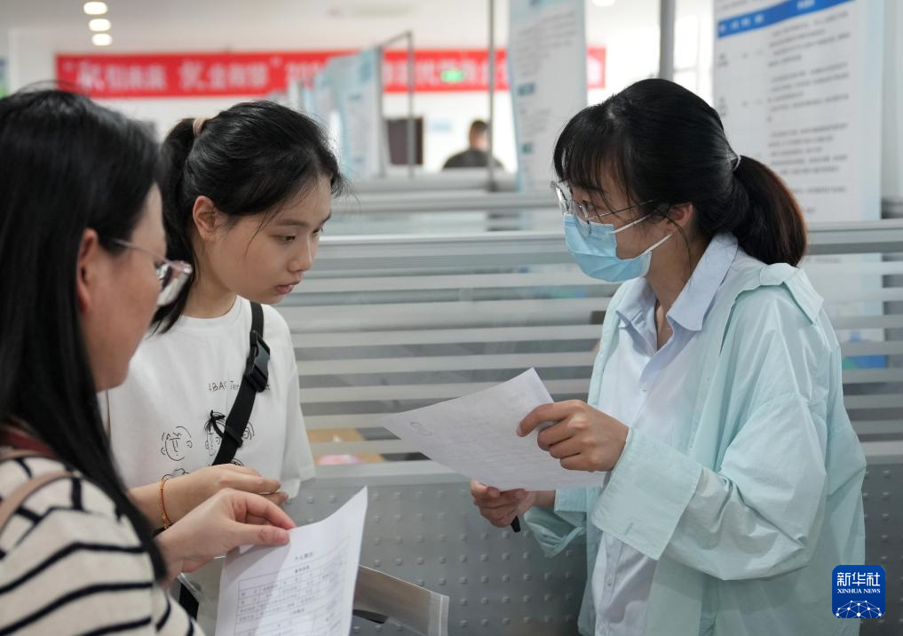 6月5日,求职者在招聘会现场查看岗位需求信息。