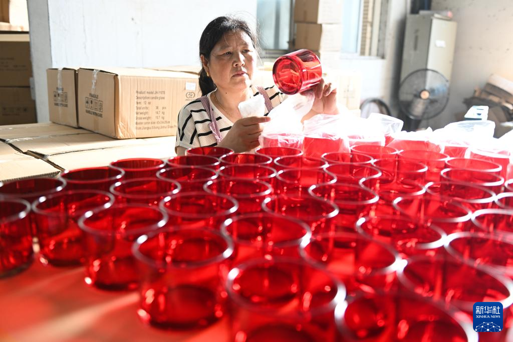 6月12日,在泗洪县金锁镇一家玻璃制品企业,员工在车间忙碌。