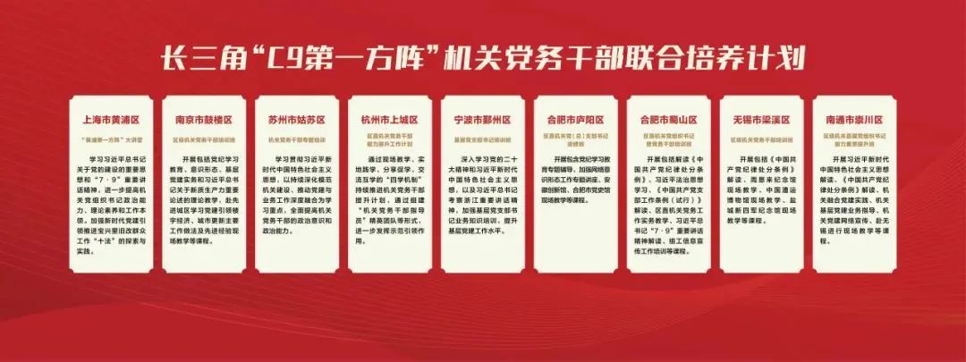 为推动9城区在教学互鉴、师资互派、培训互动等方面完善协作交流机制,会上发布了“C9党员教育联合实训基地”和“C9机关党务干部联合培养计划”。