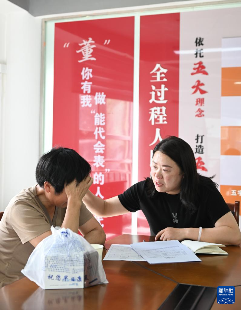 6月25日,在人大代表服务社区工作室,董雅芝(右)在了解居民实际困难。