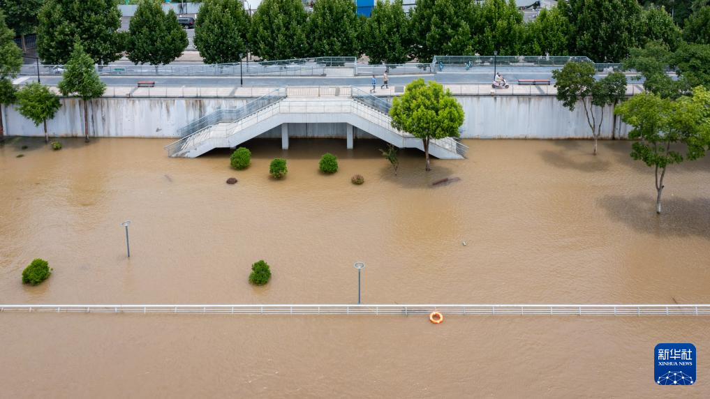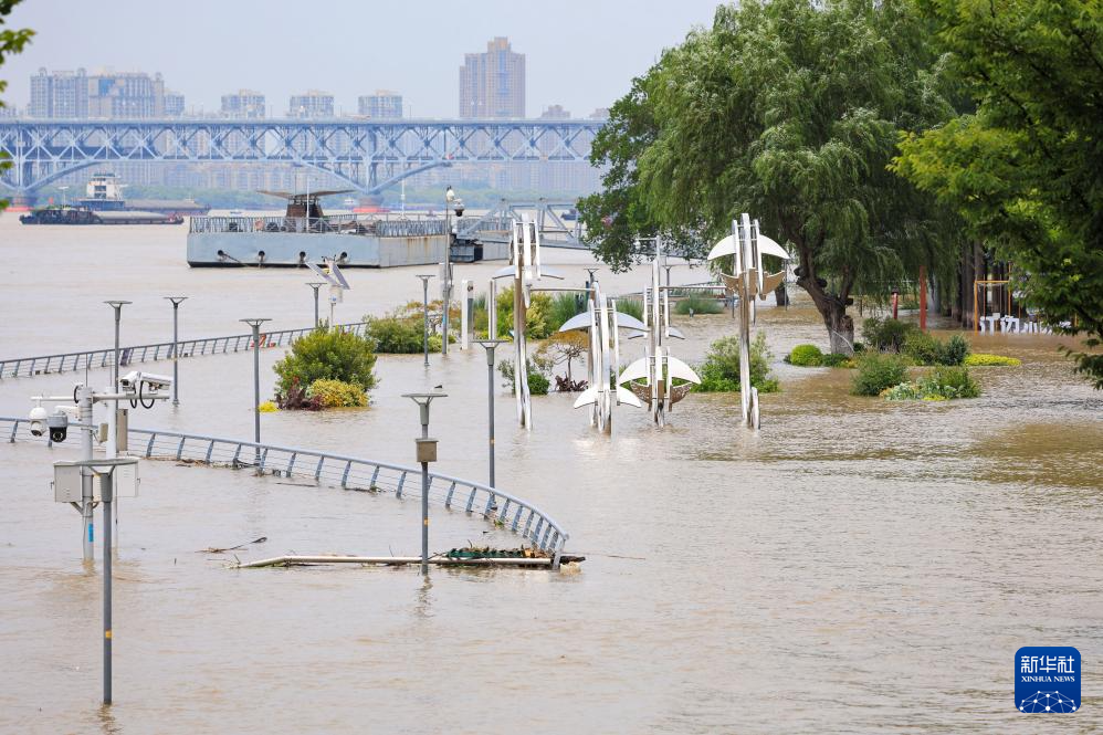 7月3日拍摄的长江南京段被淹没的亲水平台及步道。