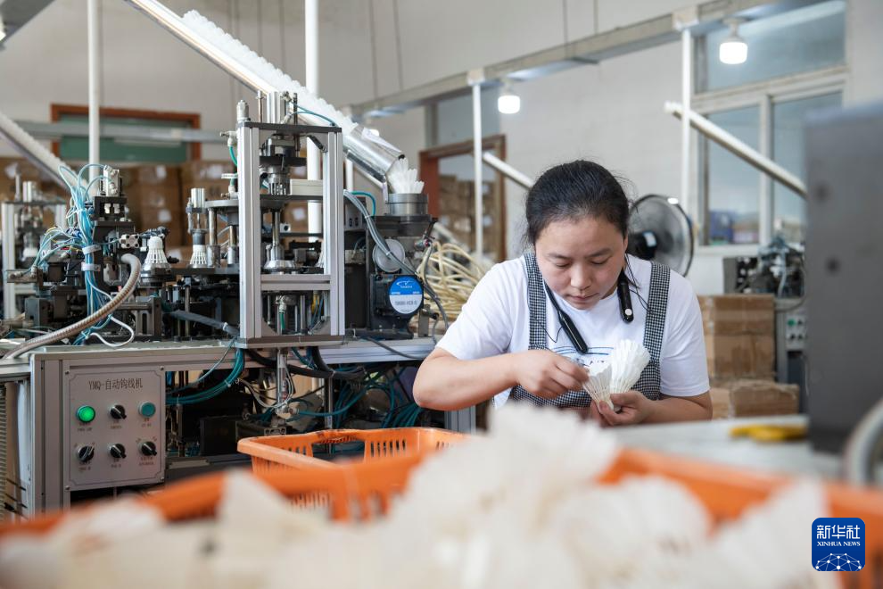 9月24日,在位于安徽省芜湖市无为市的一家体育用品公司,工作人员在羽毛球钩线车间工作。