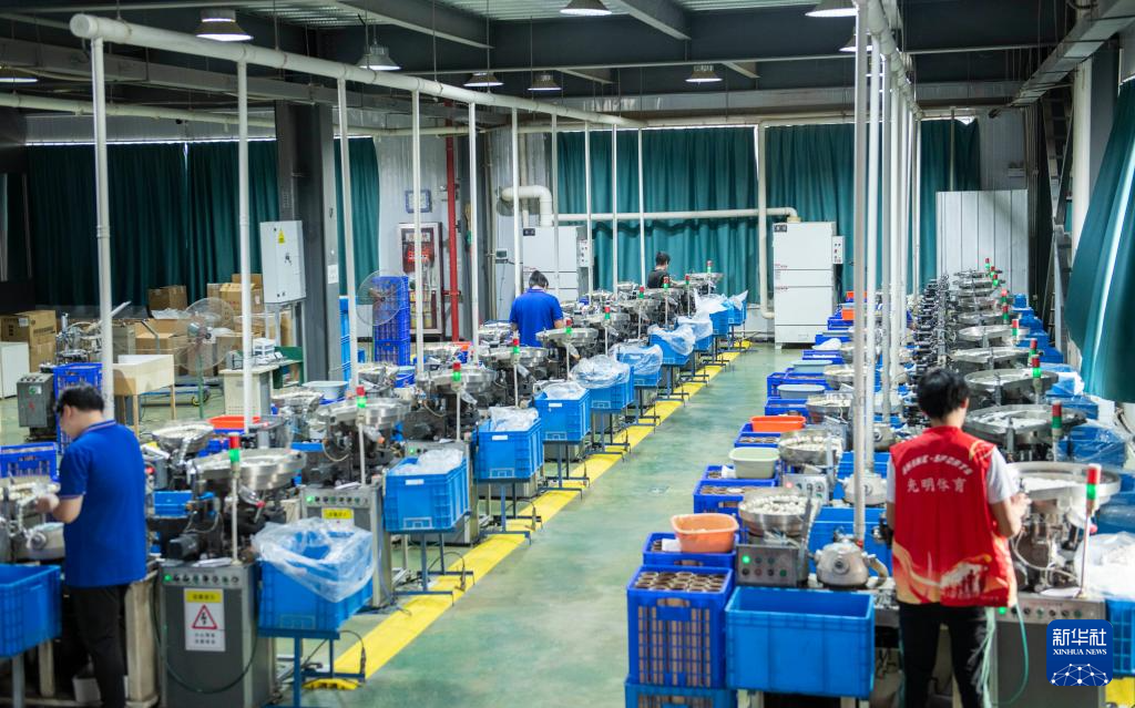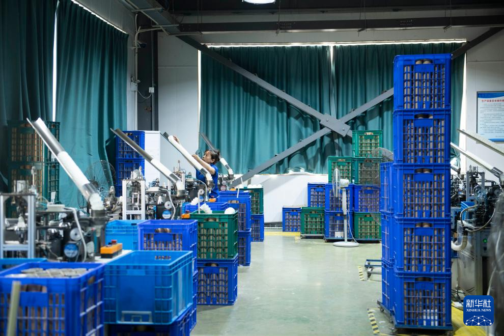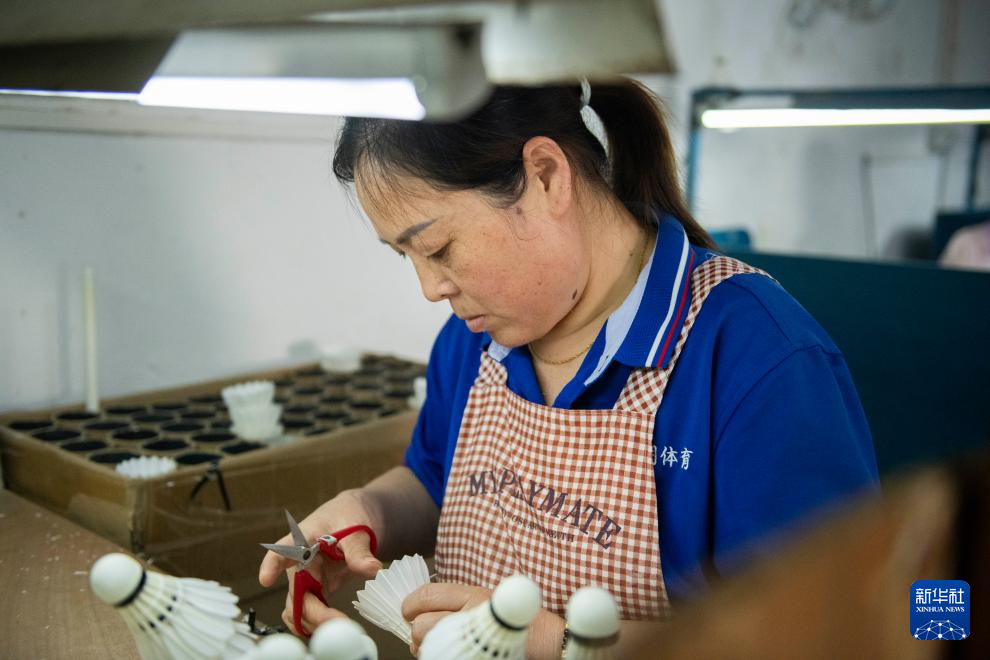 9月24日,在位于安徽省芜湖市无为市的一家体育用品公司,工作人员在羽毛球生产车间内工作。