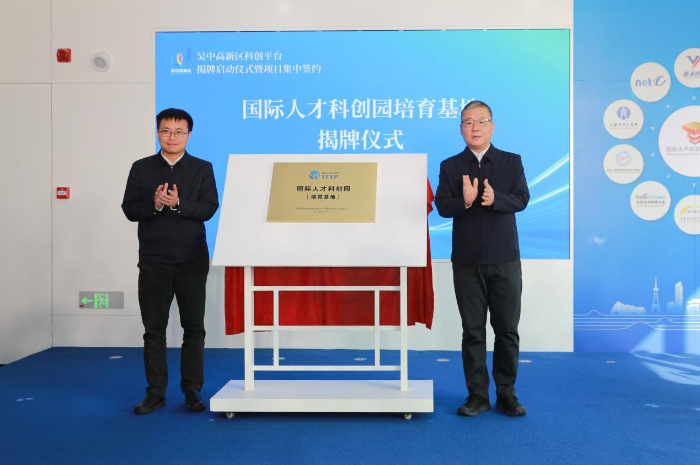 当天,三大科创平台——国际人才科创园培育基地、“创业江苏”金融助力试点园区、国家技术转移东部中心苏州分中心正式揭牌。国际人才科创园培育基地由中国技术创业协会留学人员创业园工作委员会指导设立,作为留学人员回国创业的重要载体,通过构建以企业为主体、载体为依托,政府引导、金融助力、中介服务为衔接的创新体系,有效降低创业门槛,加速科技成果产业化进程,强化区域高新技术产业聚集度,建立起国内与海外技术、文化交流通道,成为区域发展新技术、新产业、新业态的先锋阵地和重要载体。