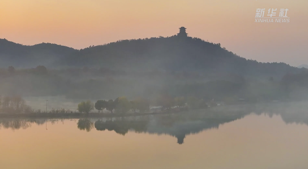 近日,安徽省池州市平天湖被蒸腾流动的平流层雾所笼罩。