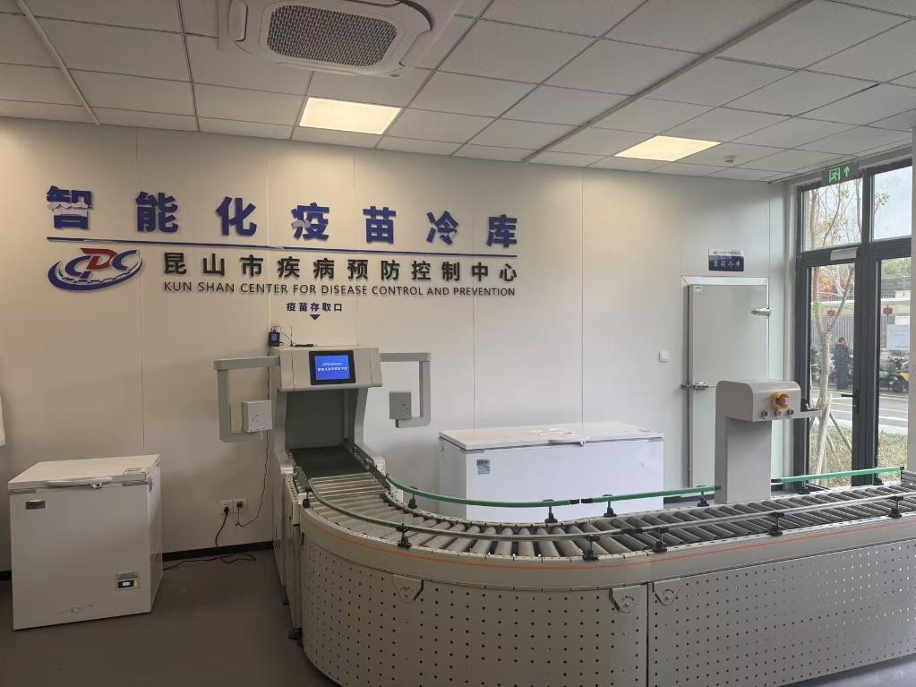 在江苏省苏州市的“智慧疫苗冷库”,配苗机器人通过精准识别,按种类、厂家、批次自动完成疫苗分拣、码放等工作。