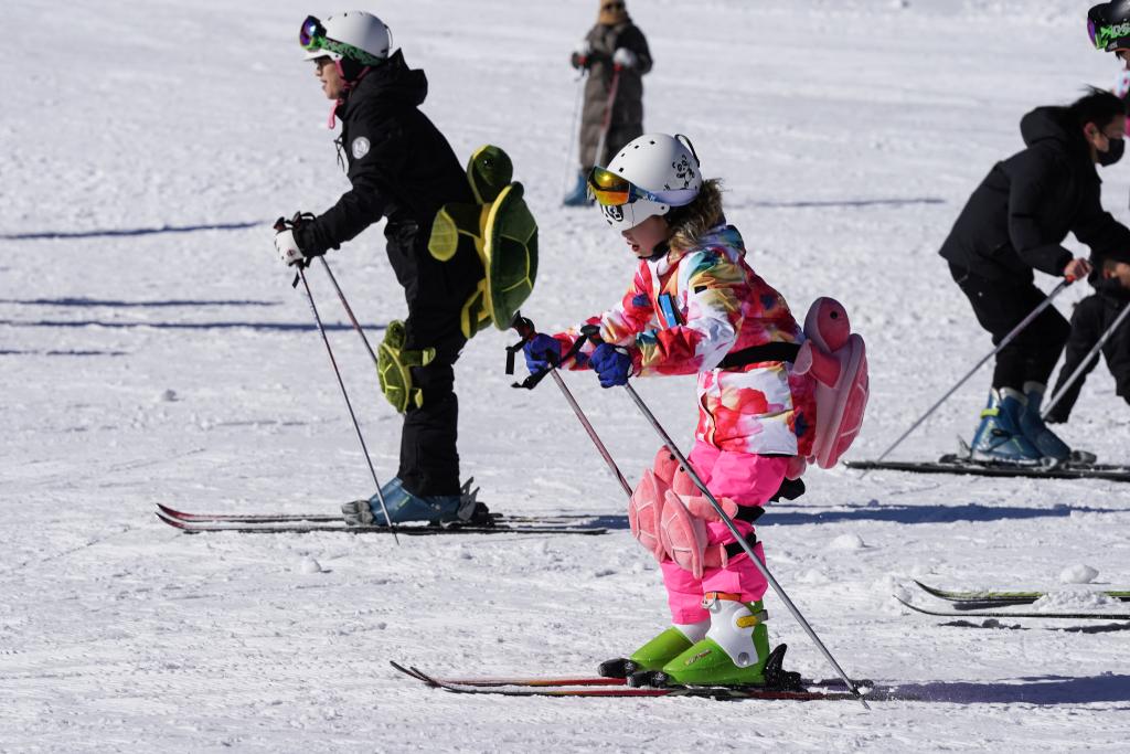当日,位于安徽省岳西县的大别山滑雪乐园迎来众多游客,人们在运动中享受冰雪带来的乐趣。