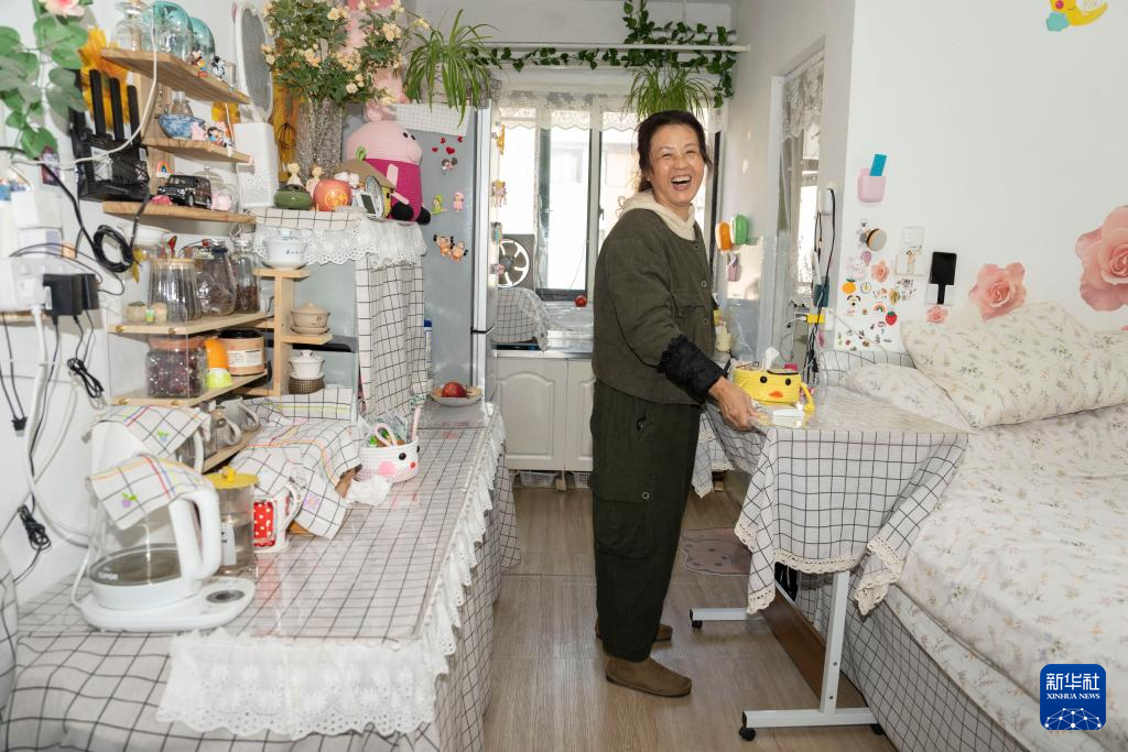 1月8日,在宁波市北仑集运基地后勤区域的司机公寓,58岁的卡嫂李月芹展示她温馨的家。