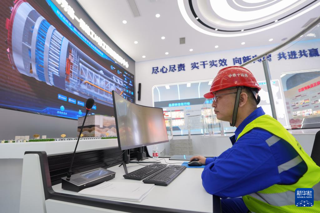 2月28日,中铁十四局技术人员在浙江绍兴群贤路西延萧山南秀路一期Ⅱ标工程隧道“临空号”盾构机内关注设备运行情况。