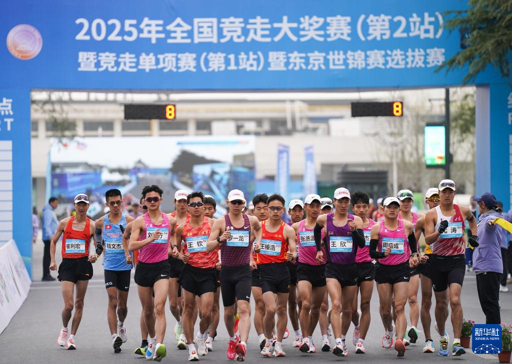3月29日,参赛选手在男子成年组35公里竞走比赛中出发。