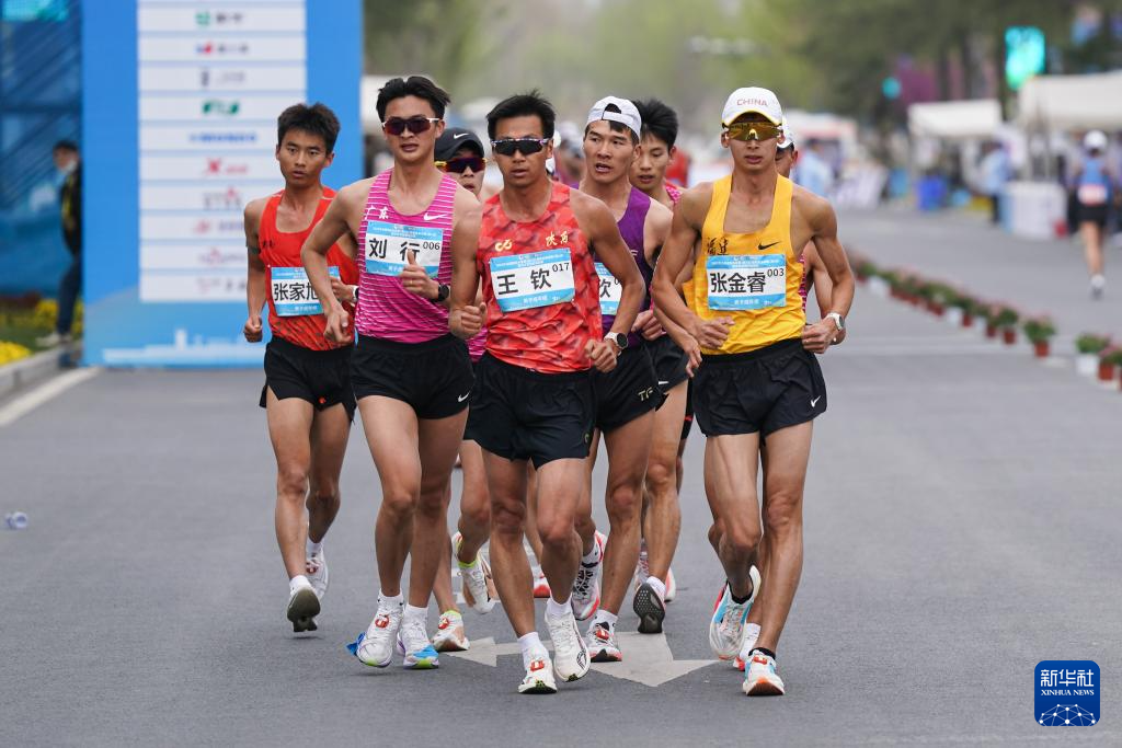 3月29日,陕西交控选手王钦(左二)在男子成年组35公里竞走比赛中撞线,他以2小时25分32秒的成绩获得冠军。