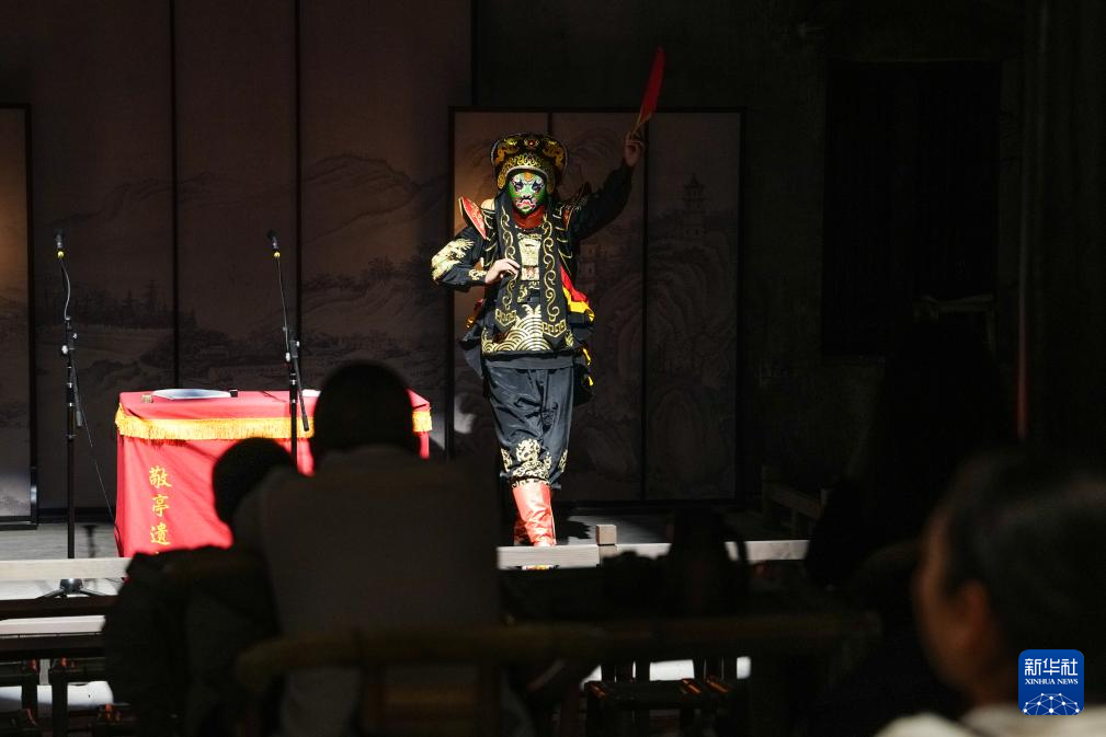 4月8日,人们在浙江省临海市台州府城文化旅游区的一家茶馆欣赏“变脸”表演。