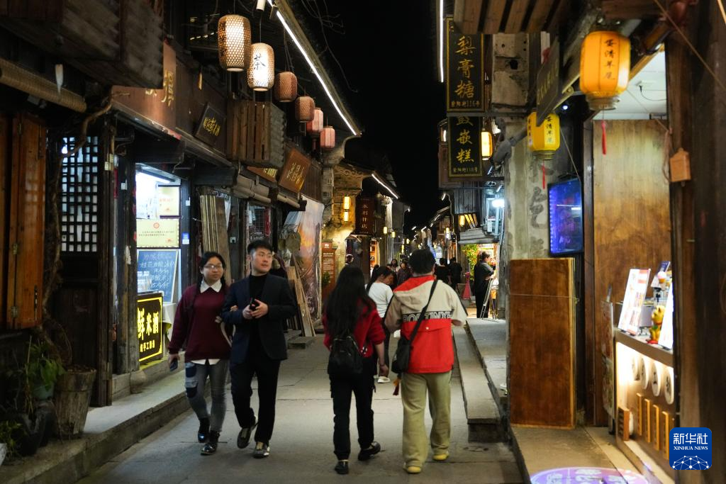 4月8日,人们在浙江省临海市台州府城文化旅游区的紫阳街游览。