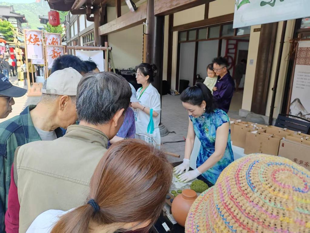 采茶、蒸茶、捣茶……这是“茶圣”陆羽在《茶经》中记载的唐代制茶技艺“七经目制茶”。4月20日上午,2025年2季度 “非遗焕新购物月”活动启动仪式在浙江省湖州市长兴县举行,当地的茶艺师们在活动现场再现了这道技艺,用当地特产紫笋茶制成茶饼。