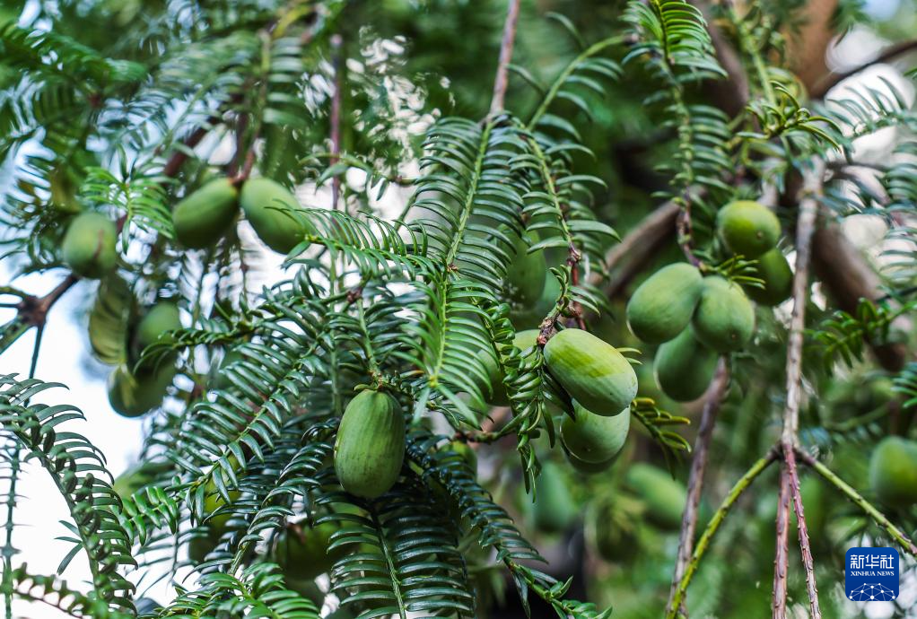 诸暨市赵家镇宣家山村的香榧树上硕果累累(9月18日摄)。