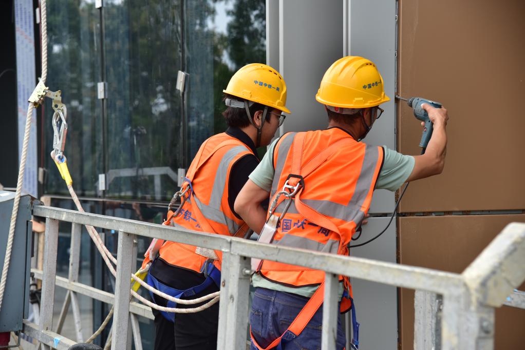 在无锡地铁4号线二期项目建设现场,项目工作人员正对临时用电线路进行安全核查,保障假期施工安全。“目前在我们菱湖大道站施工现场,建设者们正进行站台板混凝土浇筑作业。车站5号出入口的顶管工程已通过始发验收,即将开始掘进,假期工程建设稳步推进。”该项目建设负责人说。