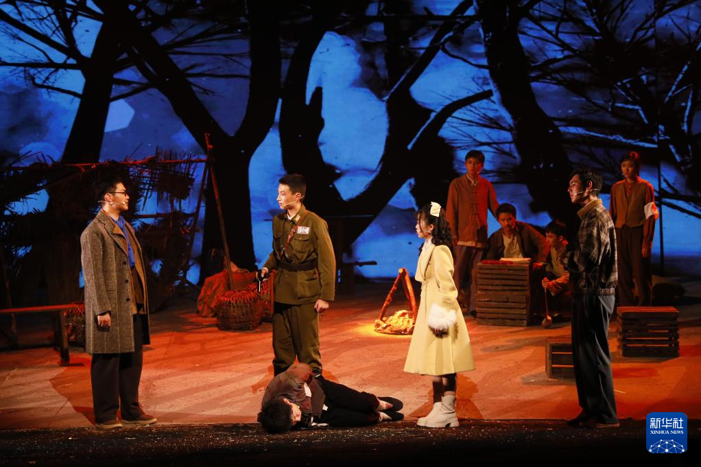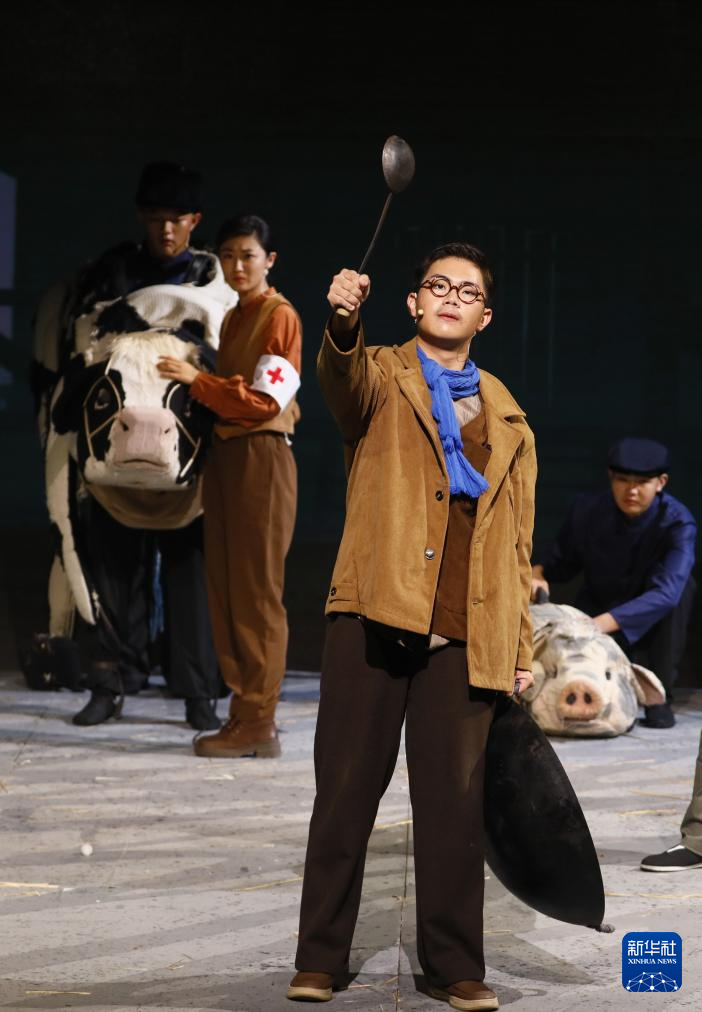 10月7日,江苏省海安高级中学学生表演话剧《西迁》。