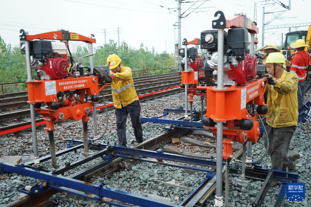 近日,中国铁路上海局集团有限公司开启了2025年京沪线第二阶段集中修施工。南京桥工段90多名工人奋战在施工一线,进行道岔更换作业,全面提升设备质量,消除线路安全隐患,以保障铁路客货运输安全畅通。
