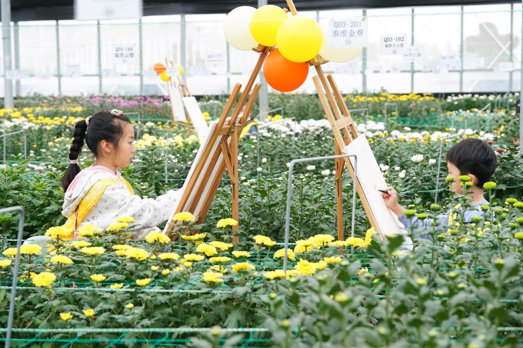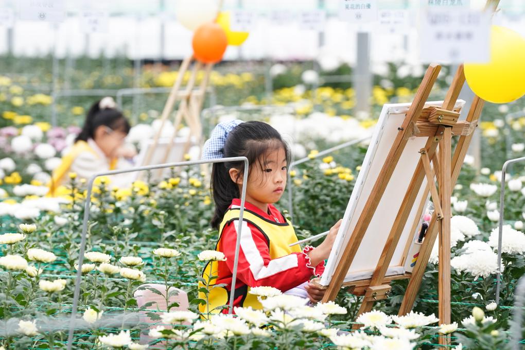 10月18日,小朋友在全椒菊博园种植基地写生。