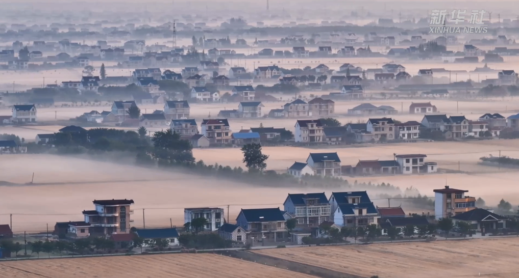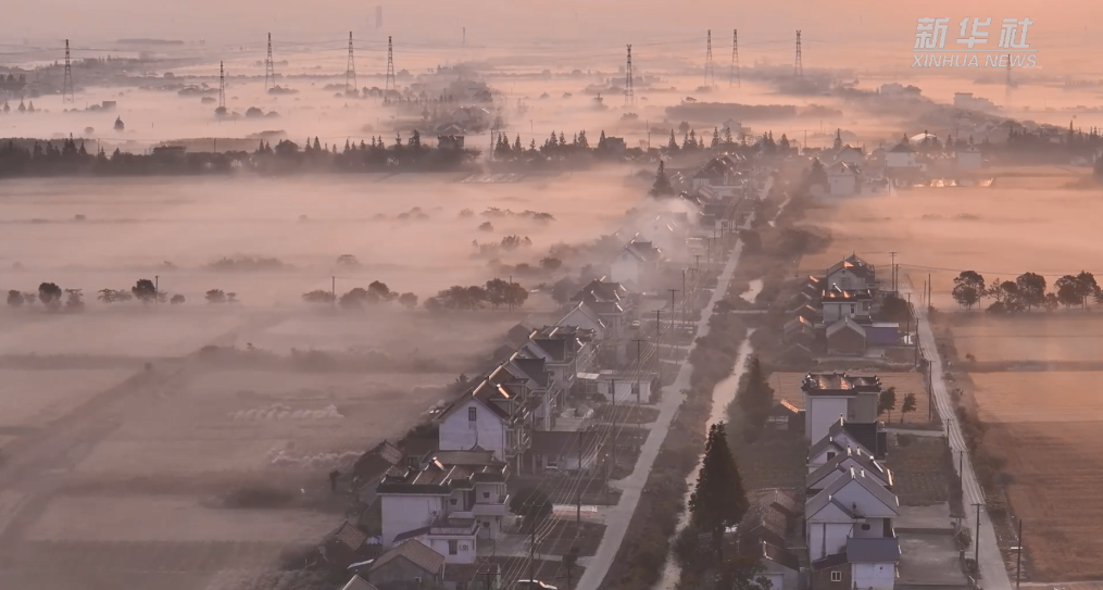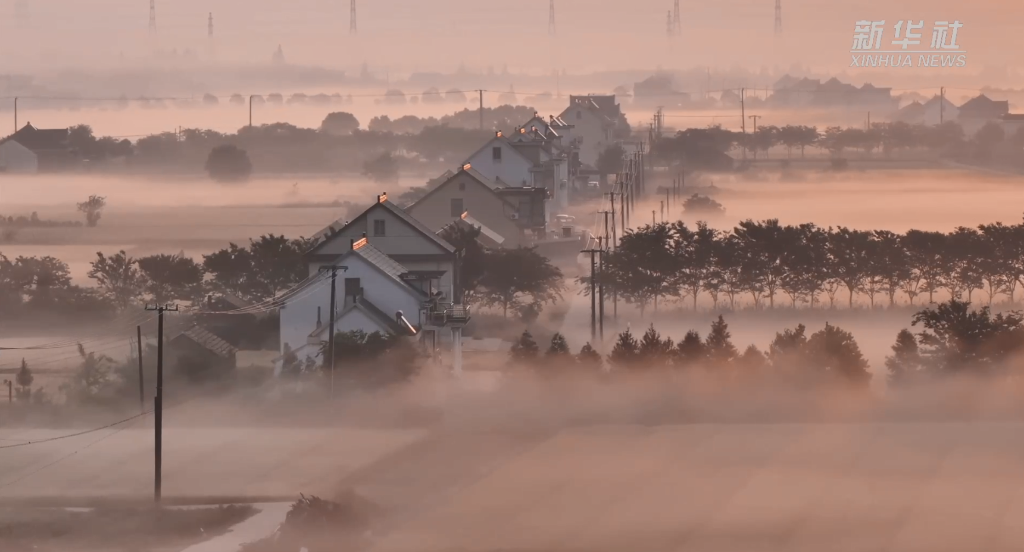 江苏如东:清晨云雾缭绕 绘就乡村诗意画卷-新华网