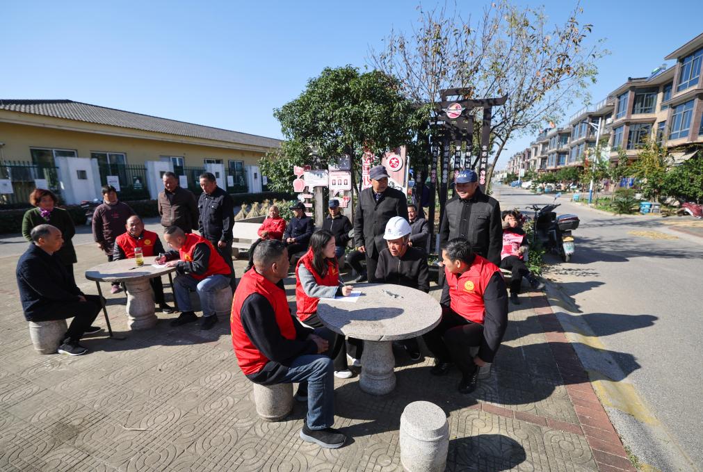 11月19日,吕山乡龙溪村的村民议事协商小组在村里的议事协商公园里就村务发展征集意见。