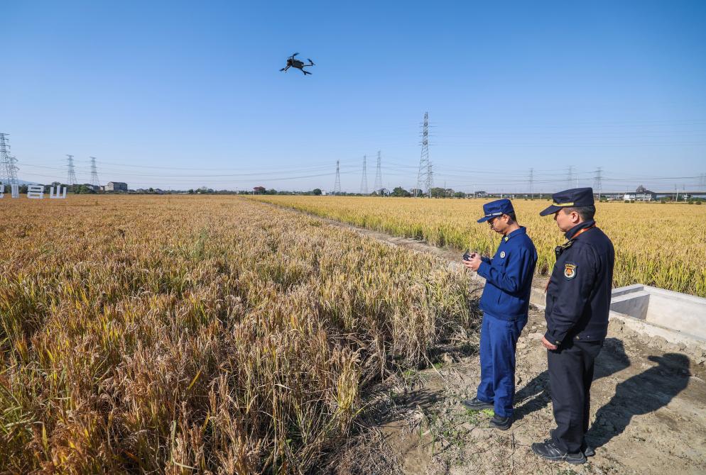 11月19日,吕山乡综合执法中队联合应急消防管理站工作人员用无人机,对粮食收割及运输期间的安全问题、道路整洁情况及秸秆焚烧等进行巡查。