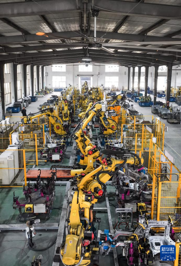 11月27日,在位于金华市金东区的佳通汽车科技(浙江)有限公司的生产车间内,自动化设备在加工新能源汽车的配件(无人机照片)。
