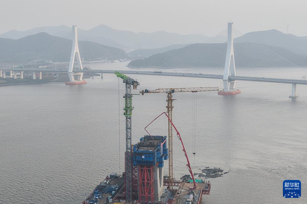 浙江:甬舟铁路富翅门公铁两用大桥建设正酣-新华网