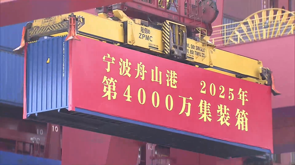 12月2日,一个身披“红妆”的集装箱被稳稳吊至装箱轮,标志着宁波舟山港年集装箱吞吐量首次突破4000万标准箱。