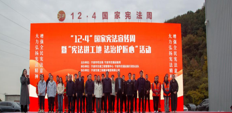 12月5日下午,由宁波市司法局、宁波市交通运输局主办,宁波市交通工程管理中心承办,宁波交通工程建设集团有限公司协办的“12·4”国家宪法宣传周暨“宪法进工地 法治护匠心”集中宣传活动,在宁波交工集团安全生产教育实践基地成功举办。